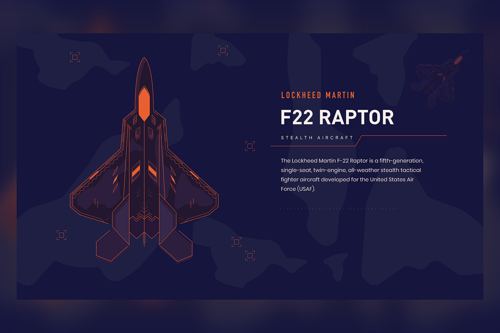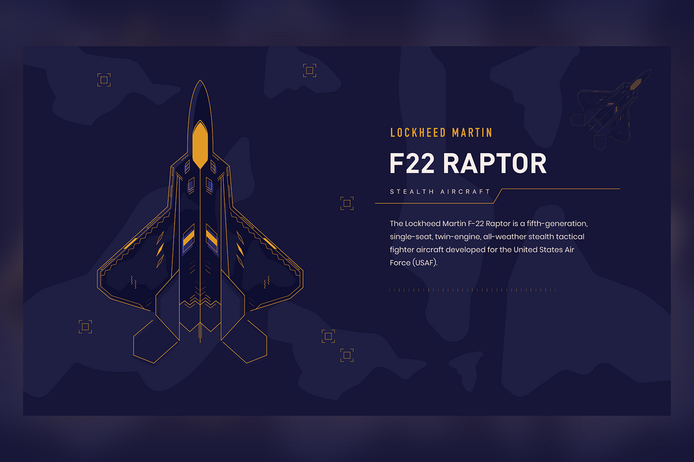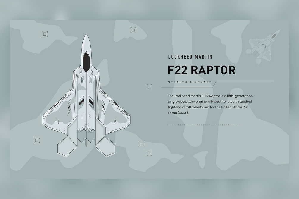 You'll get Illustration of F22 Raptor in 5 different colors and png and pdf format.